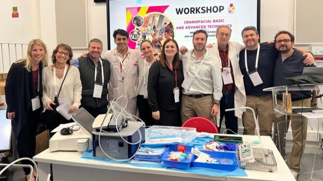El encuentro académico-quirúrgico fue dirigido por el Dr. Eric Arnaud, reconocido como uno de los principales referentes internacionales en cirugía craneofacial, quien además trabajó junto a Paul Tessier, considerado el padre de la cirugía craneofacial moderna. Esta instancia reunió a cirujanos con experiencia en el área, quienes tuvieron la oportunidad de perfeccionar técnicas avanzadas mediante el trabajo práctico sobre modelos tridimensionales de tejidos blandos y duros de alto realismo, con un sistema de supervisión intensiva de un tutor sénior por cada dos participantes.